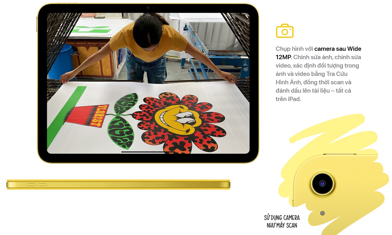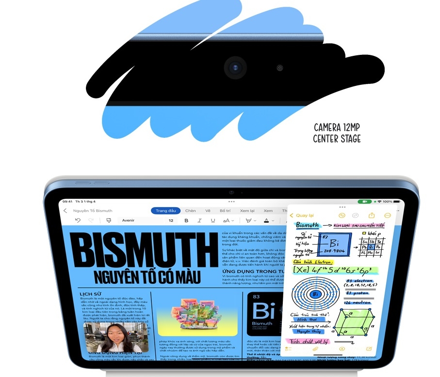 Apple iPAd được trang bị camera trước và sau đều 12MP, hỗ trợ đầy đủ các tính năng hiện đại như Zoom Kĩ thuât số, Time-lapse, quay chậm,Smart HDR 4, gắn thẻ địa lí và Tự động lấy nét . Đặc biệt, khả năng quay video cực kỳ linh hoạt với các tùy chọn từ HD 720p đến 4K 2160p@60fps, đáp ứng tốt cả quay vlog, học online hay sáng tạo nội dung chuyên nghiệp.