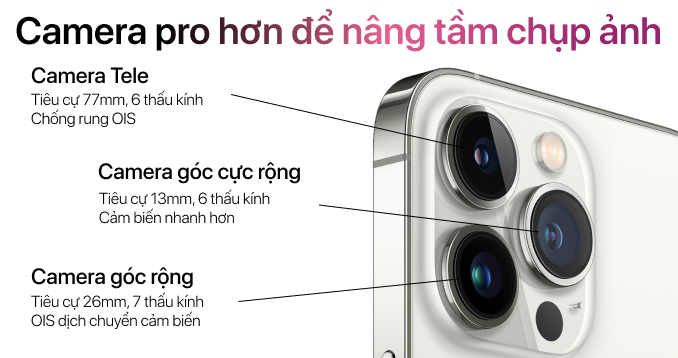 iPhone 13 Pro sở hữu cụm camera gồm: