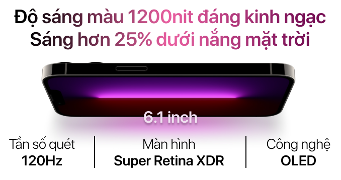 Dòng Pro của iPhone 13 được trang bị tấm nền OLED 6.1 inch với độ sáng cao, độ tương phản sâu và màu sắc chính xác. Công nghệ ProMotion 120 Hz mang lại chuyển động mượt mà khi chơi game, lướt web hoặc xem nội dung video.