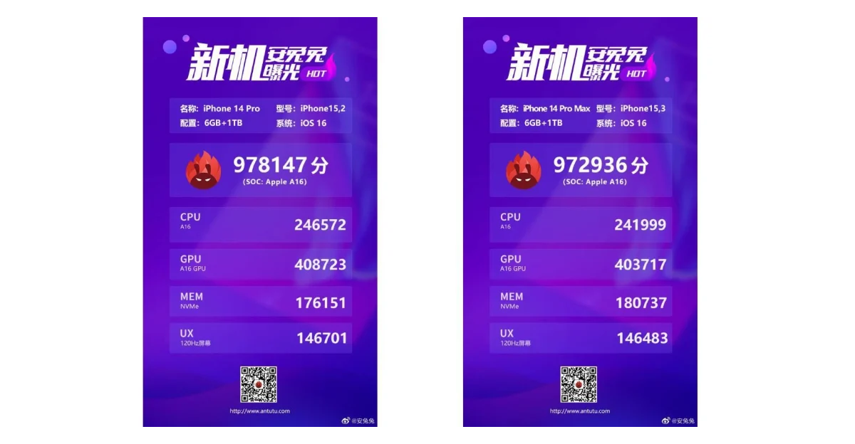 Để người dùng có được tương tác mượt mà và trải nghiệm tuyệt vời, iPhone 14 Pro Max đã trang bị bộ vi xử lý Apple đời mới nhất - Apple A16 Bionic với gần 6 tỷ bóng bán dẫn. Sản phẩm cũng đạt số điểm benchmark tương đối cao với 972.936 điểm: 241.999 cho bài kiểm tra CPU và 403.717 cho GPU. Con số ấn tượng này cho phép nâng cao hiệu suất lên khoảng 15% so với iPhone 13 Pro Max.